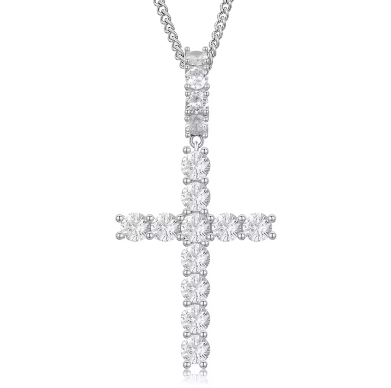 The Cross Pendant is made out of 925 Sterling Silver VVS Moissanite